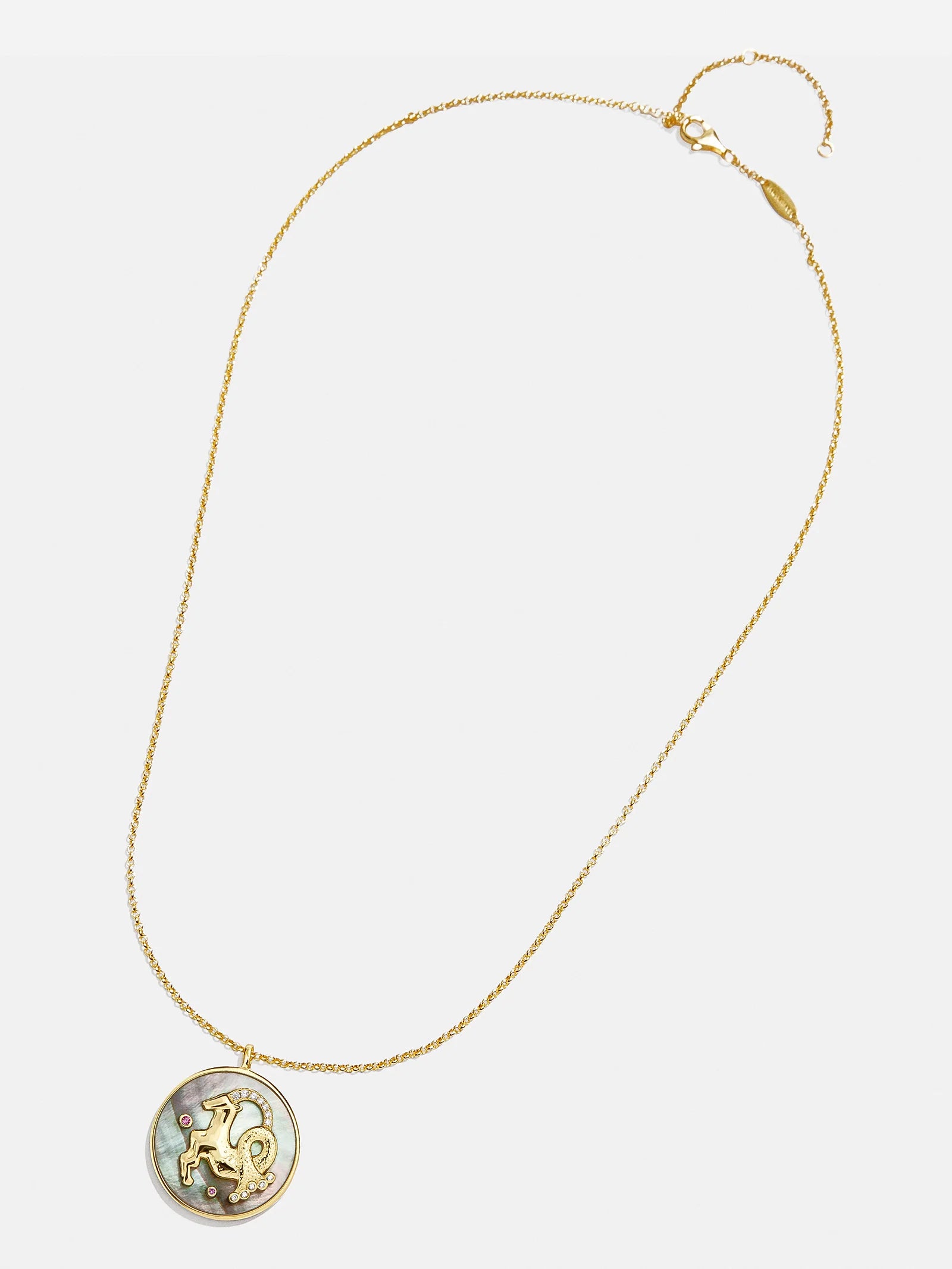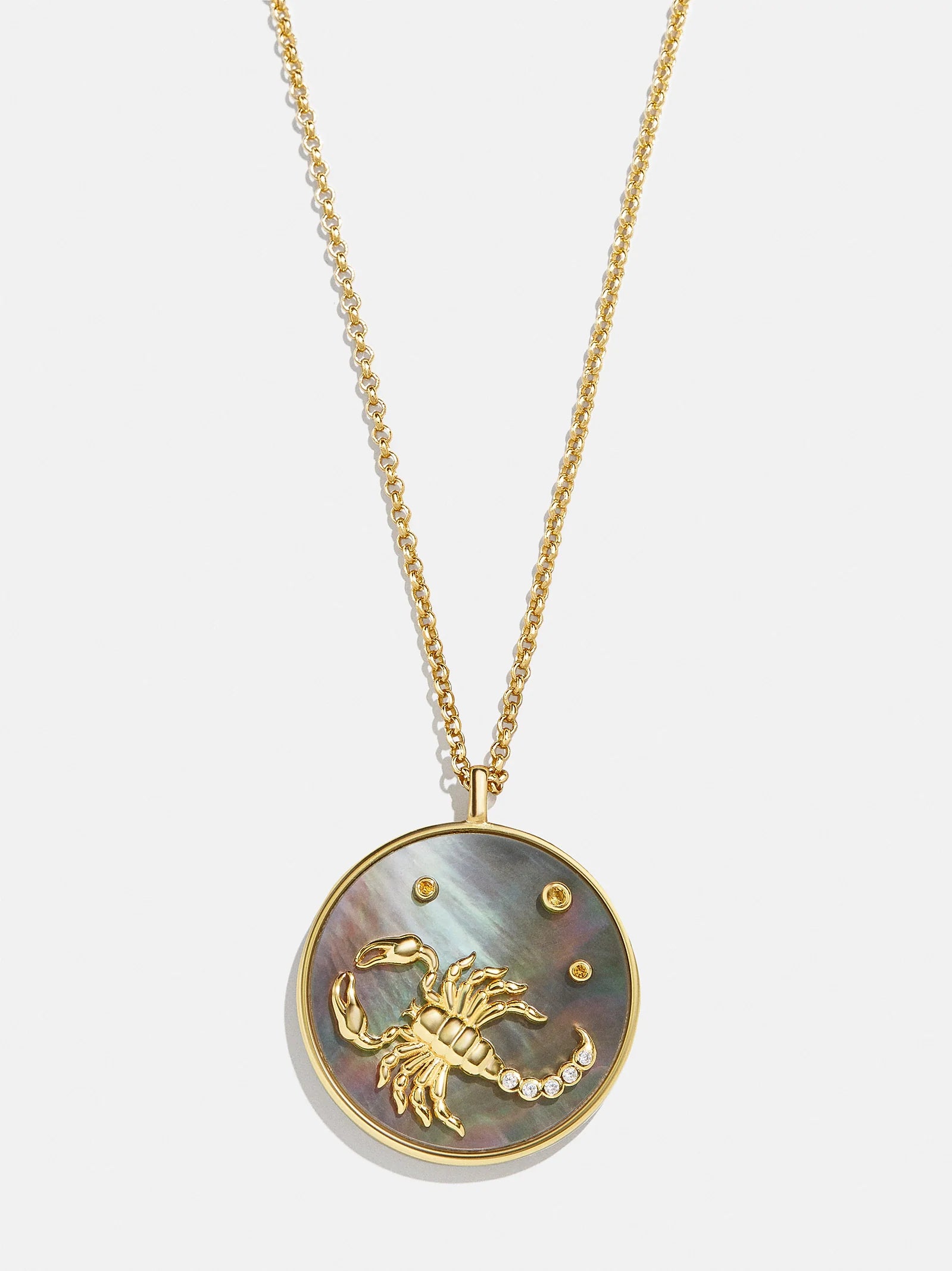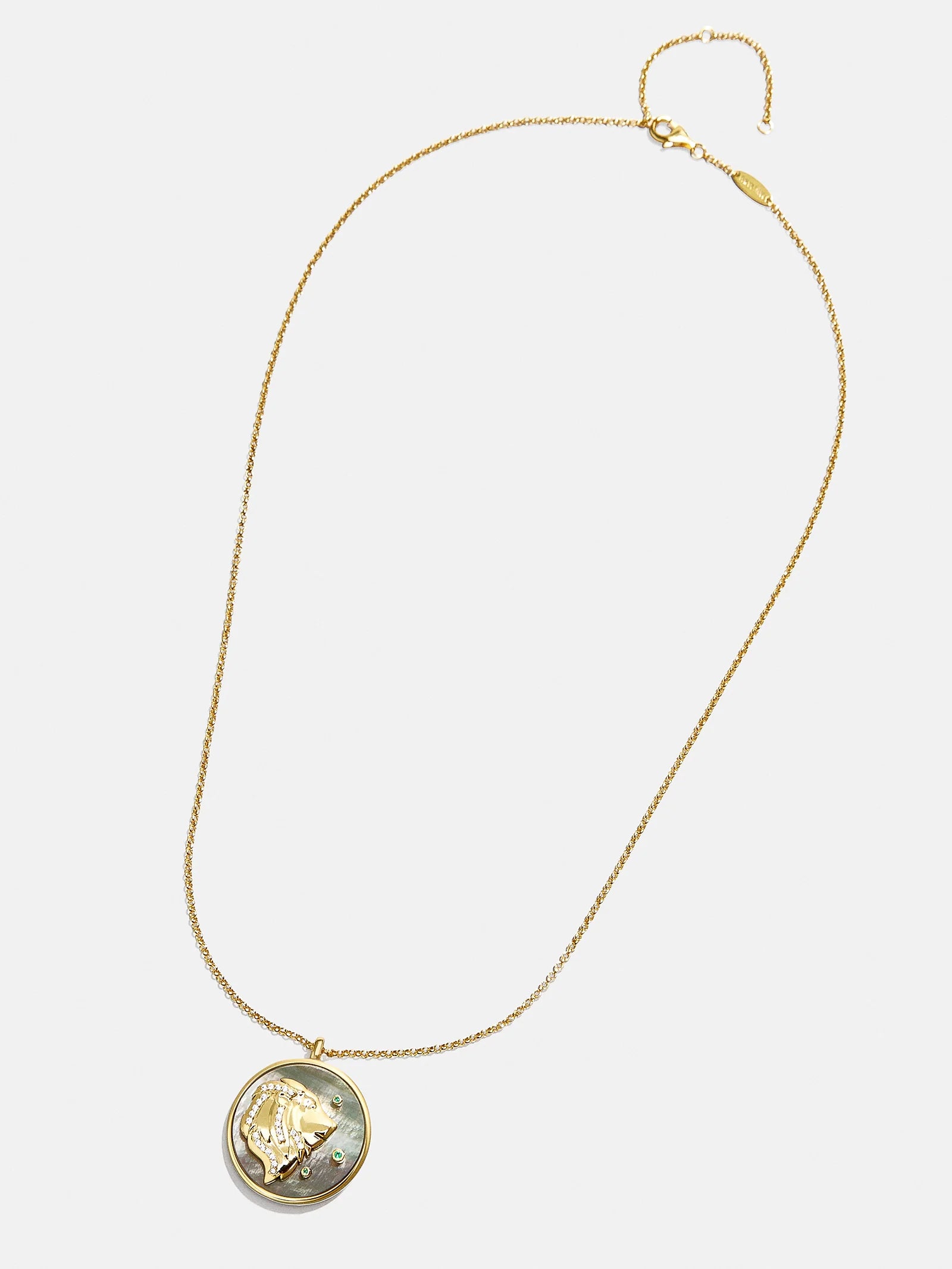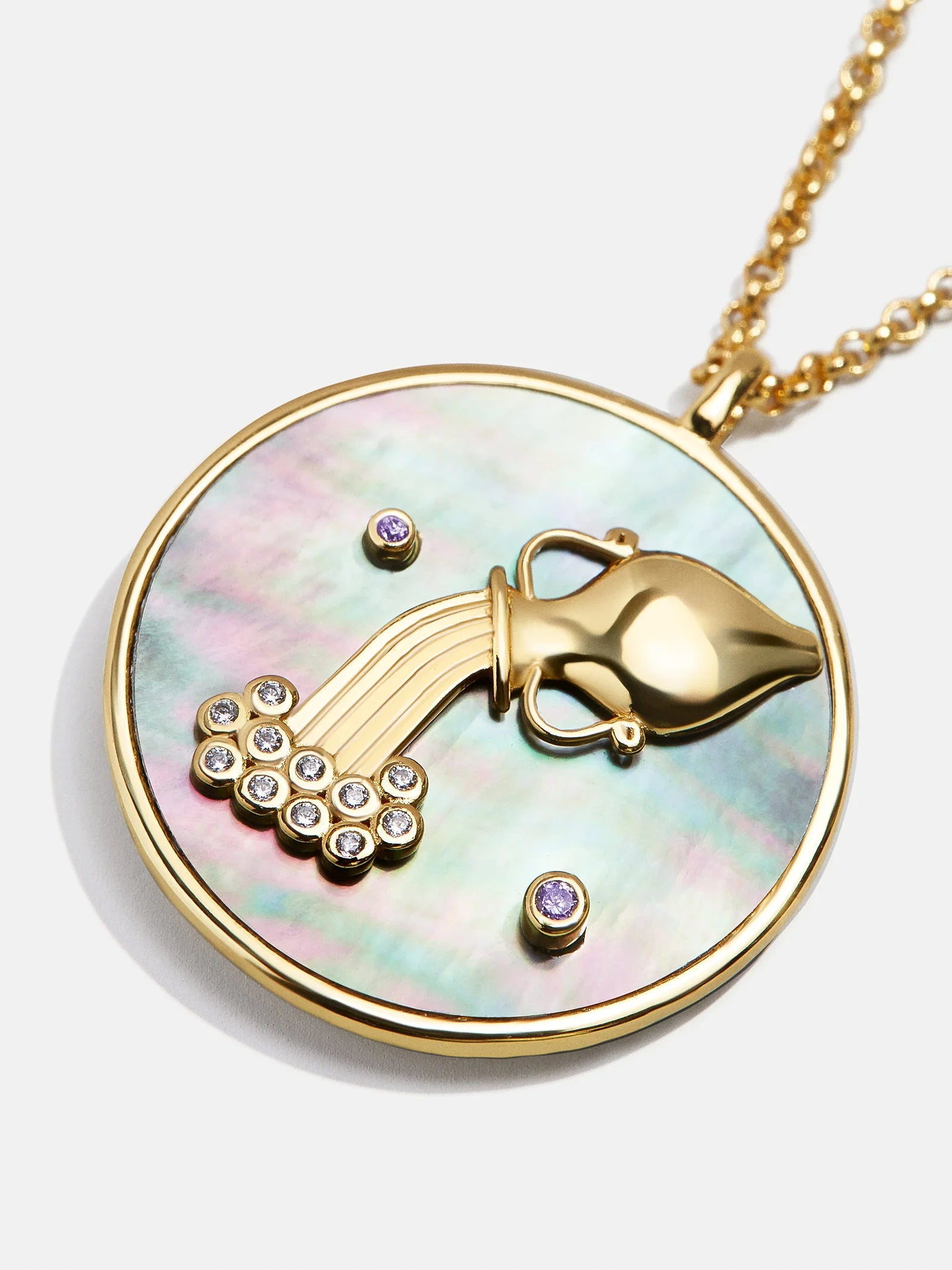 This is your sign. Our collection of reversible zodiac medallion necklaces will be by your side through every solar return, Mercury retrograde, and lunar eclipse. Each pendant is crafted with 18K Gold and luxe Cubic Zirconia stones. One side features gorgeous mother of pearl with gem accents, while the other is gold with a pretty pavé border. Opt to add your sun, moon, or rising sign (or all three!) to your stack for layers that will guarantee good energy.